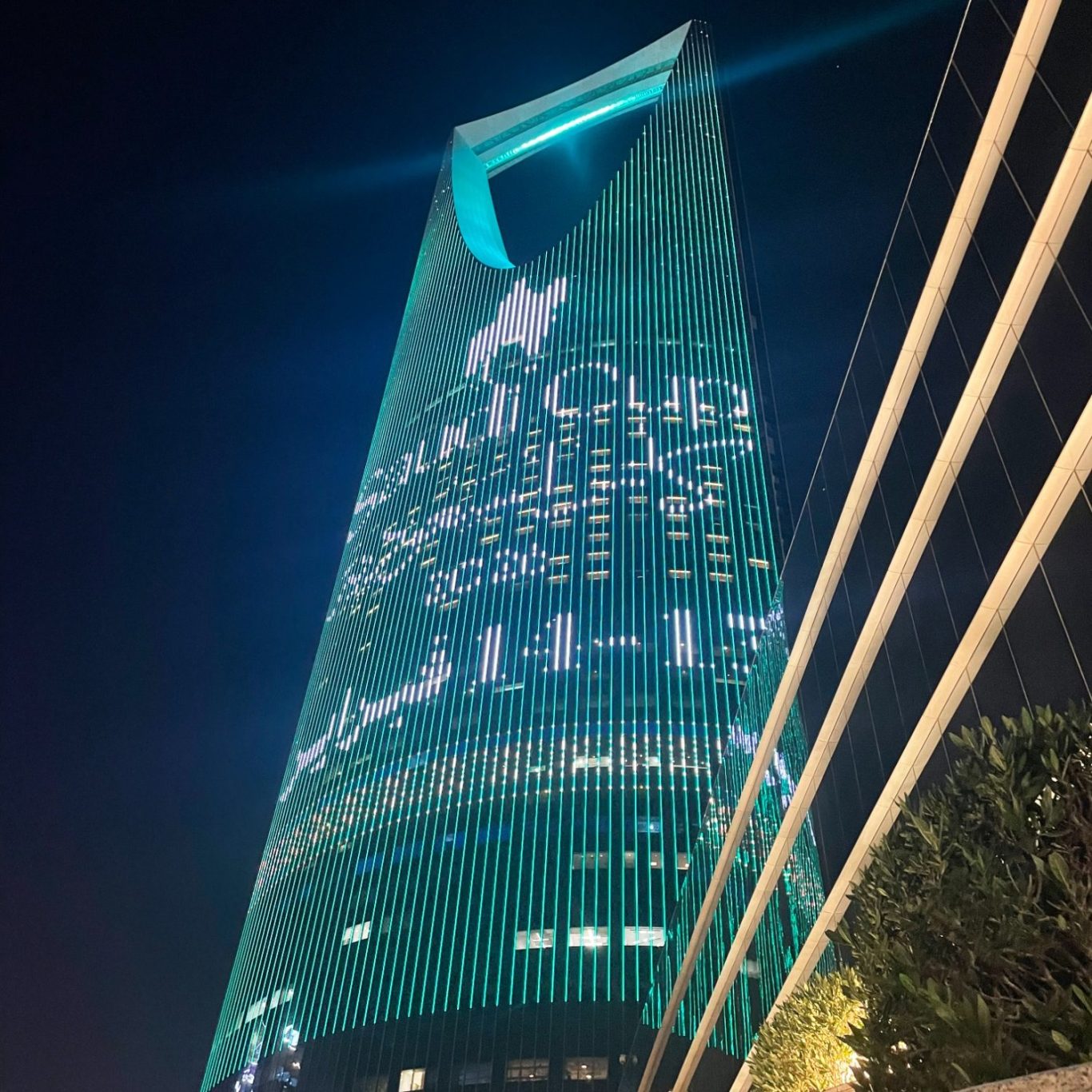 Kingdom Tower (Kingdom Centre) in Riyadh is a distinctive 302 m, 99-story mixed-use skyscraper featuring a dramatic inverted arch with a skybridge; housing offices, luxury residences, a hotel, and a shopping mall, and serving as an iconic landmark on the city’s skyline.