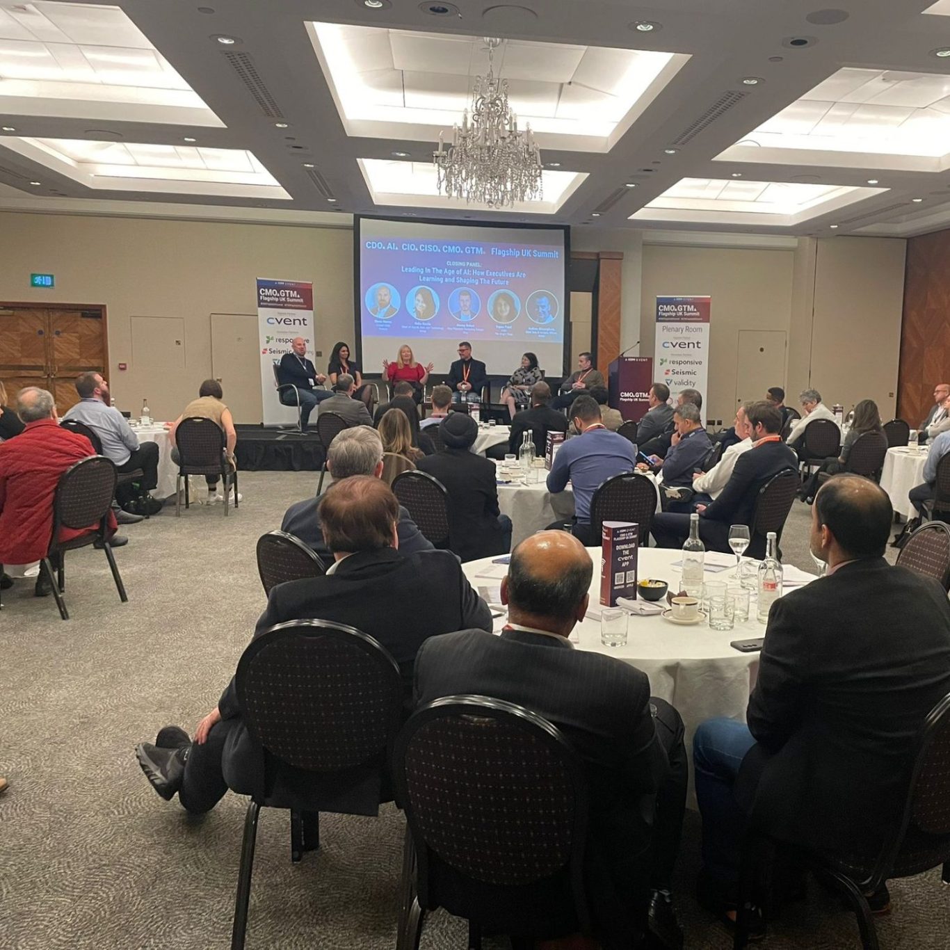 C-Suite executives at an international summit contemplate the opportunities and complexities of AI.